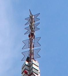 На деяких вежах антена може бути рознесена зазвичай для зменшення навантаження через власну вагу *, відсутності вільного місця для повноцінної антени, або для кращого покриття.